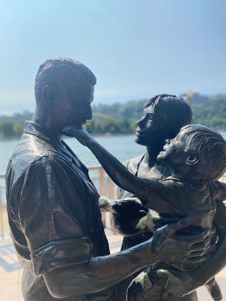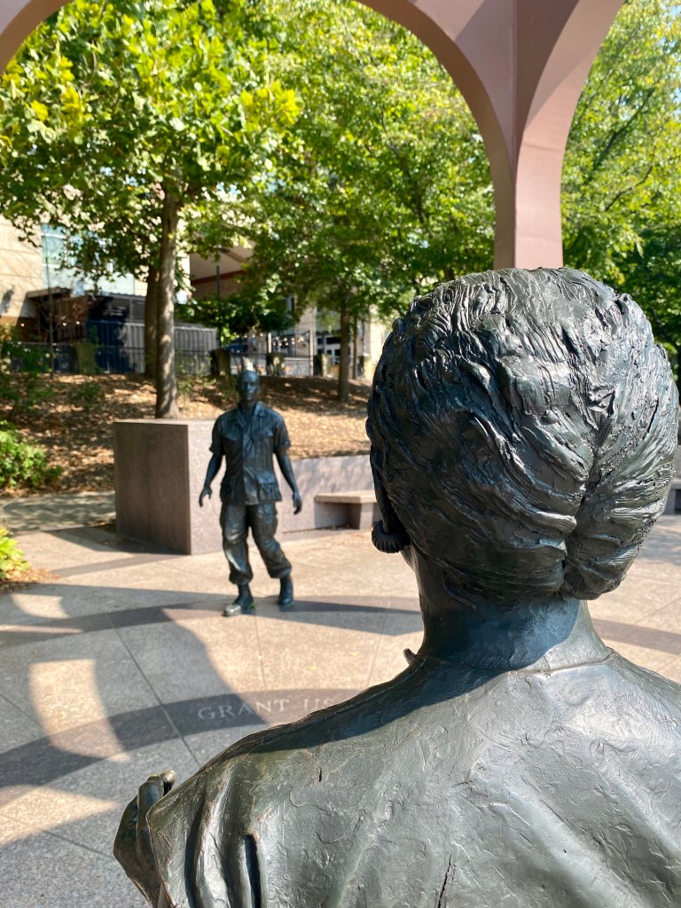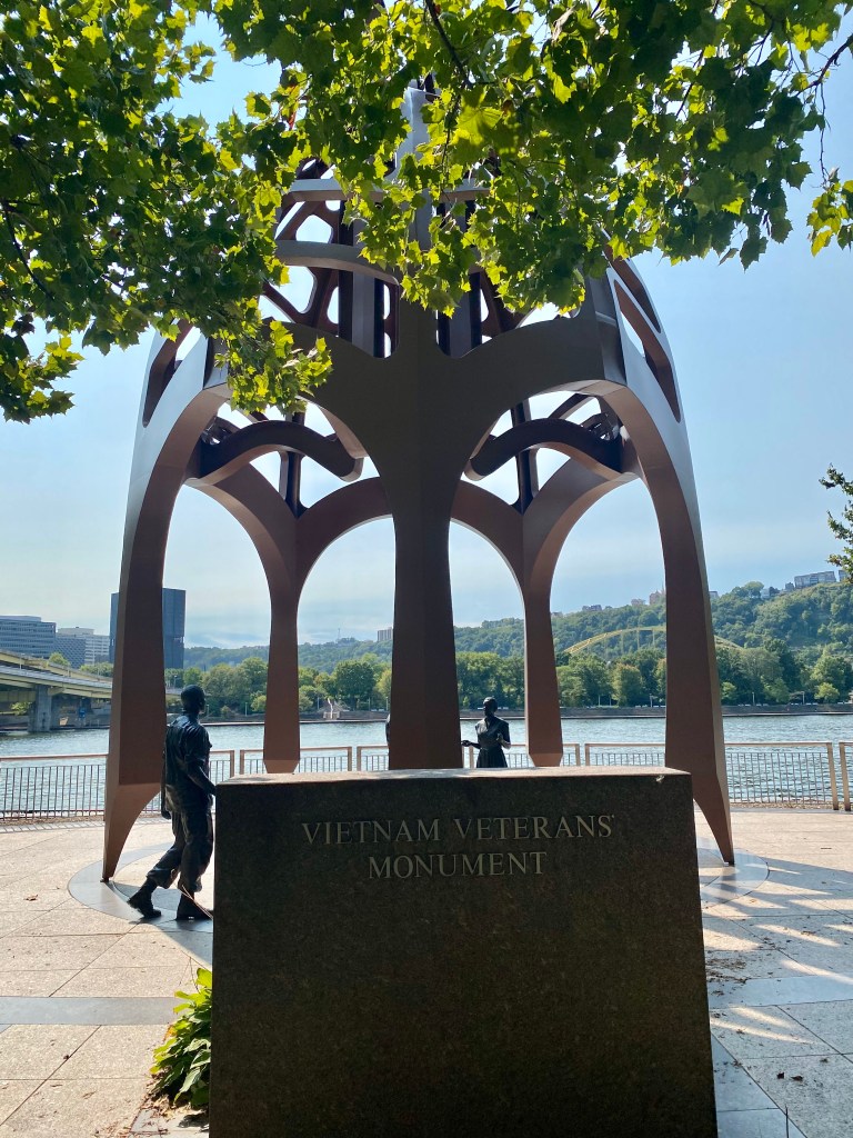 The structure of the Vietnam Veterans Monument in Pittsburgh, PA was inspired by a hibiscus flower pod. The organic shape was meant to evoke rebirth. I found it touching that a small plant was growing under the foot of one of the soldiers.