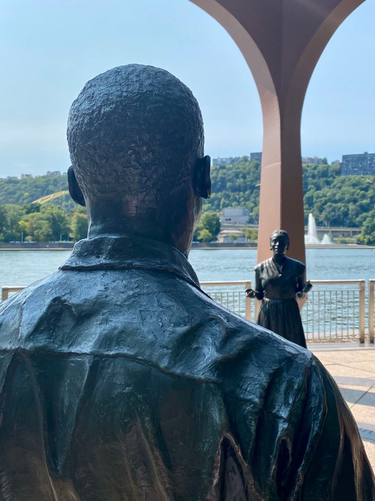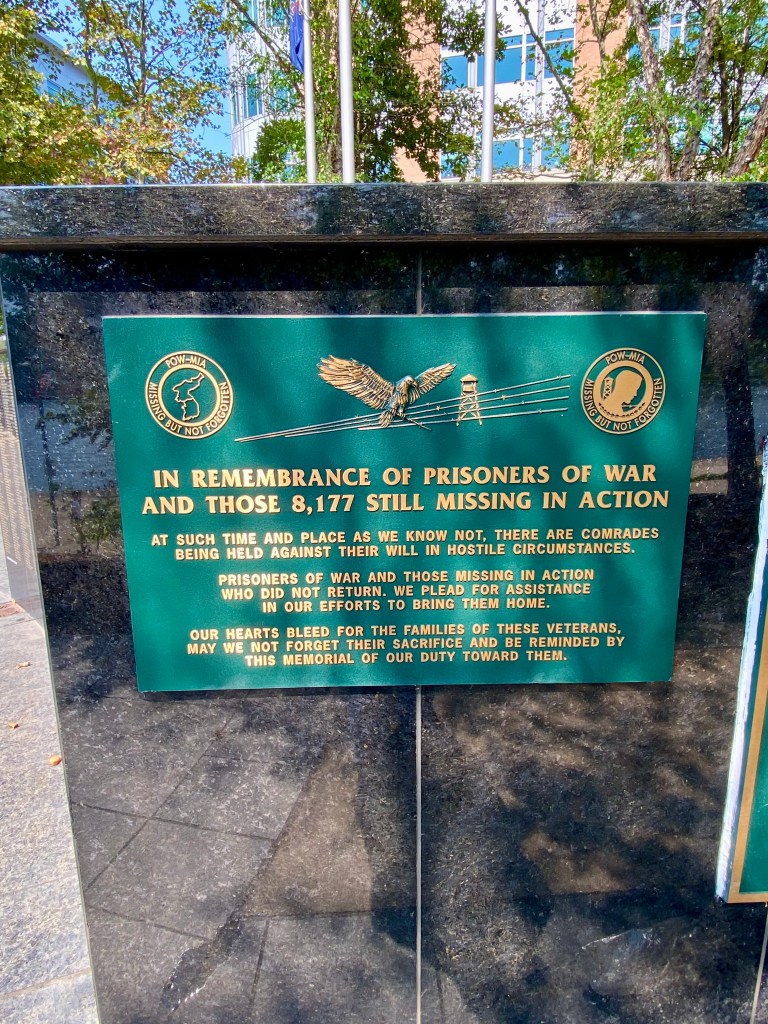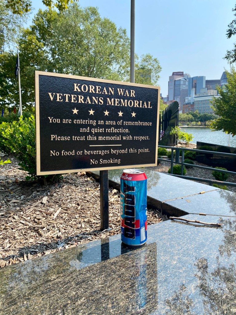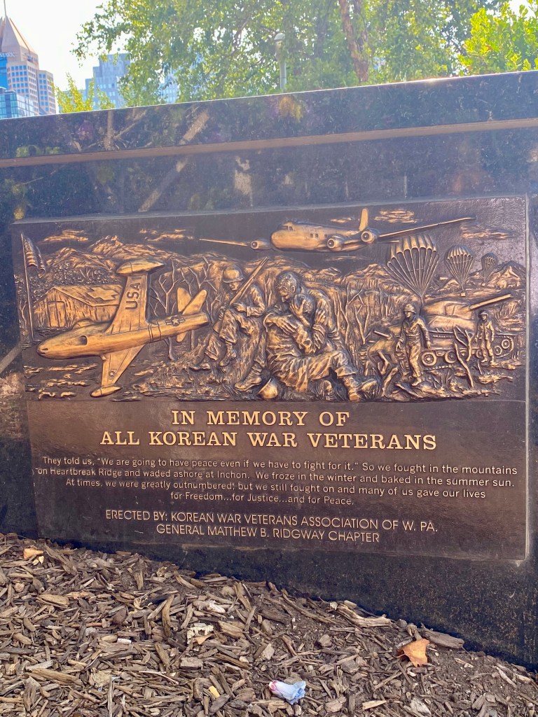 The three major war memorials in Pittsburgh (WWII, Korea, and Vietnam) are all located in between the beautiful riverwalk and a bustling commercial area. People use the areas as parks, jogging along the river and eating lunch on the steps. No one else was visiting the memorials at the same time as me, but the trash indicates some interaction (though negative or passive at best).